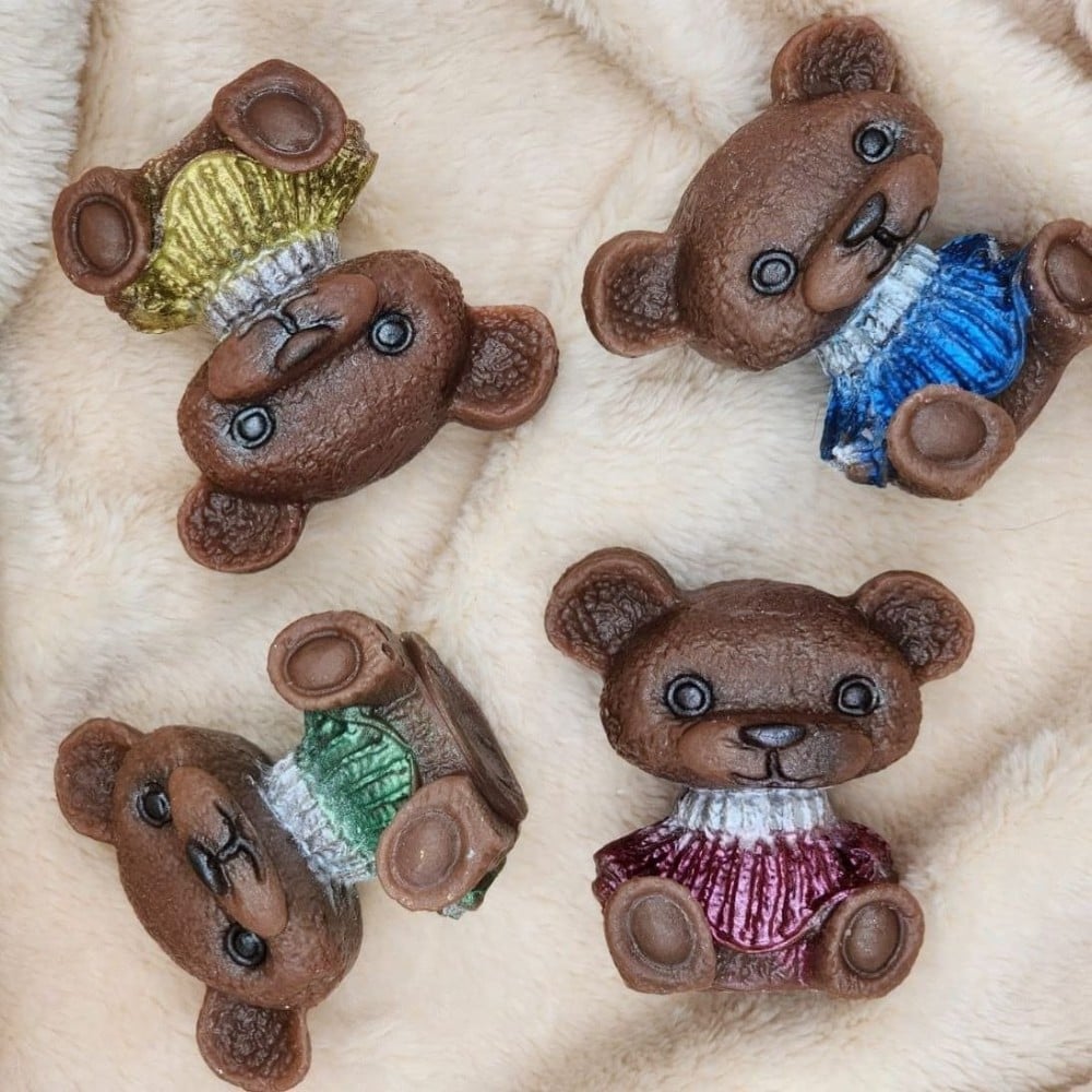 Glycerine teddy bear soap with a fluffy colorful sweater